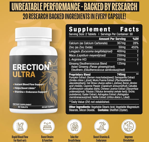 Are you ready to take control of your intimate moments and experience rock-solid confidence when it counts? Millions of men face challenges with stamina, circulation, and maintaining hardness, but what if a scientifically crafted supplement could help you regain your edge—fast? Erection Ultra by EPN Supplements is designed to do just that, combining 20 research-backed ingredients in a rapid-response formula that targets blood flow, girth, stamina, and hardness. Imagine feeling the surge of vitality and confidence within 45 minutes of taking just two capsules, helping you perform at your best without the wait or worry.